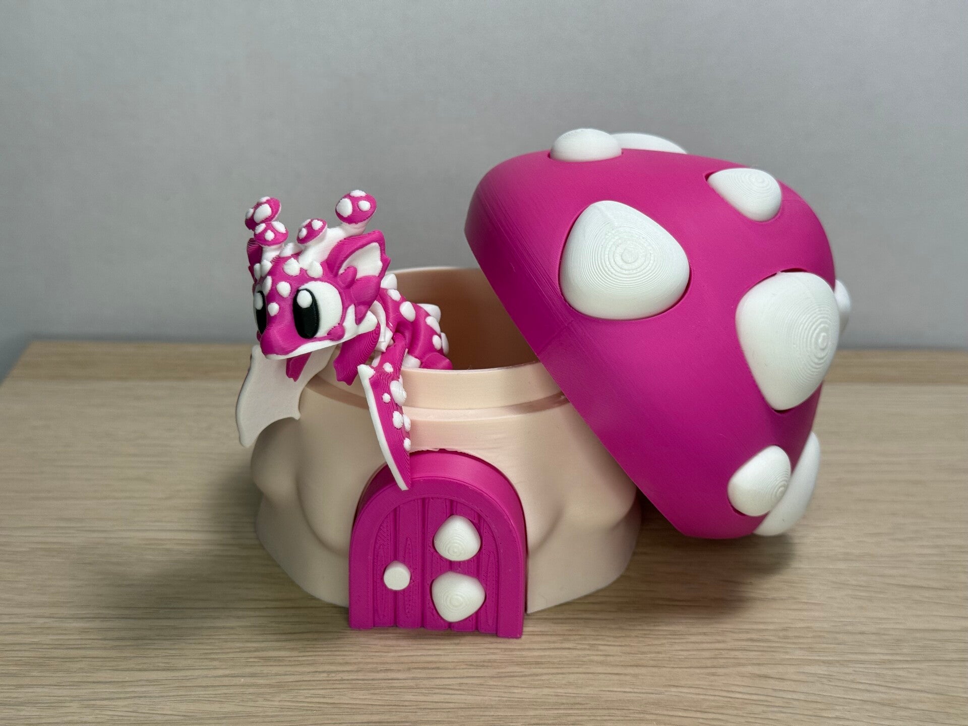 De paddenstoel is niet alleen het huisje van je draakje, maar ook handig als opbergbox voor al je kleine schatten, sieraden of geheime vondsten.