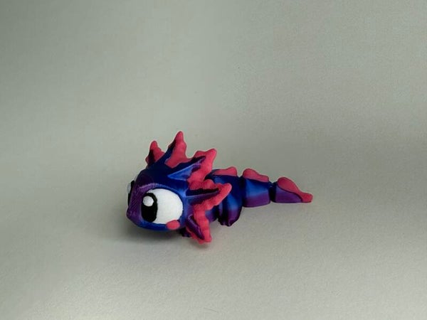 Met zijn lieve glimlach en speelse vinnen steelt hij ieders hart. Deze mini axolotl is met zorg 3D-geprint in vrolijke kleuren en is perfect om mee te spelen, te verzamelen of cadeau te doen.